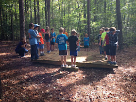 Successes through Teamwork: The challenges for Day 2 were very tough. Fifth graders were asked to attempt the Never-Ending Gobbstopper Challenge which they did not accomplish in Day 1. It was beautiful to see the encouragement among the group. Students succeeded by using teamwork and positive communication! Next up was the Peanut Butter River Challenge. Once again, students showed such determination and wonderful communication skills for this challenge. It took over an hour, but it was complete! No one gave up on each other or themselves! Everyone had crossed the river using just 2 planks. It was clear that this could not be done alone! For their last challenge, fifth graders attempted the Sailing Ship. They were asked to stand around the perimeter of a big board that was on a pipe. The challenge being that everyone had to be on it while not allowing edges touch the ground. It took the students about 15 minutes to complete! It was obvious that communication skills were getting much better after having successfully completed this task and two others prior this one.