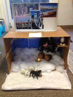 This student showed San Francisco on top and the Arctic below. The display was to represent Julie's choices of either going to live with her friend Amy in California, or staying in Alaska with her father. When presenting, the student discussed why she thought Julie made the right decision. And how cute is the glowing candle?! I loved this one!