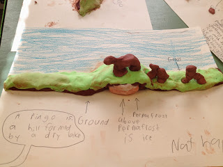 In Science, I taught my students about Pingos in Alaska. I showed a quick video, and then we discussed how these form. Students had such a great time building pingos, and Alaskan animals with model clay! Next week, I have an even bigger surprise in store for the students and our on-going learning of Alaska!!