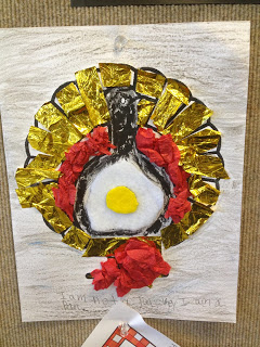 Students are to take a turkey and create a disguise for it. I sent them home on Friday to do just that. Today, to add in some writing because it IS the Year of the Writer at our school, students were asked to write a story where their turkey had to convince a hungry family that they were indeed NOT a turkey at all!