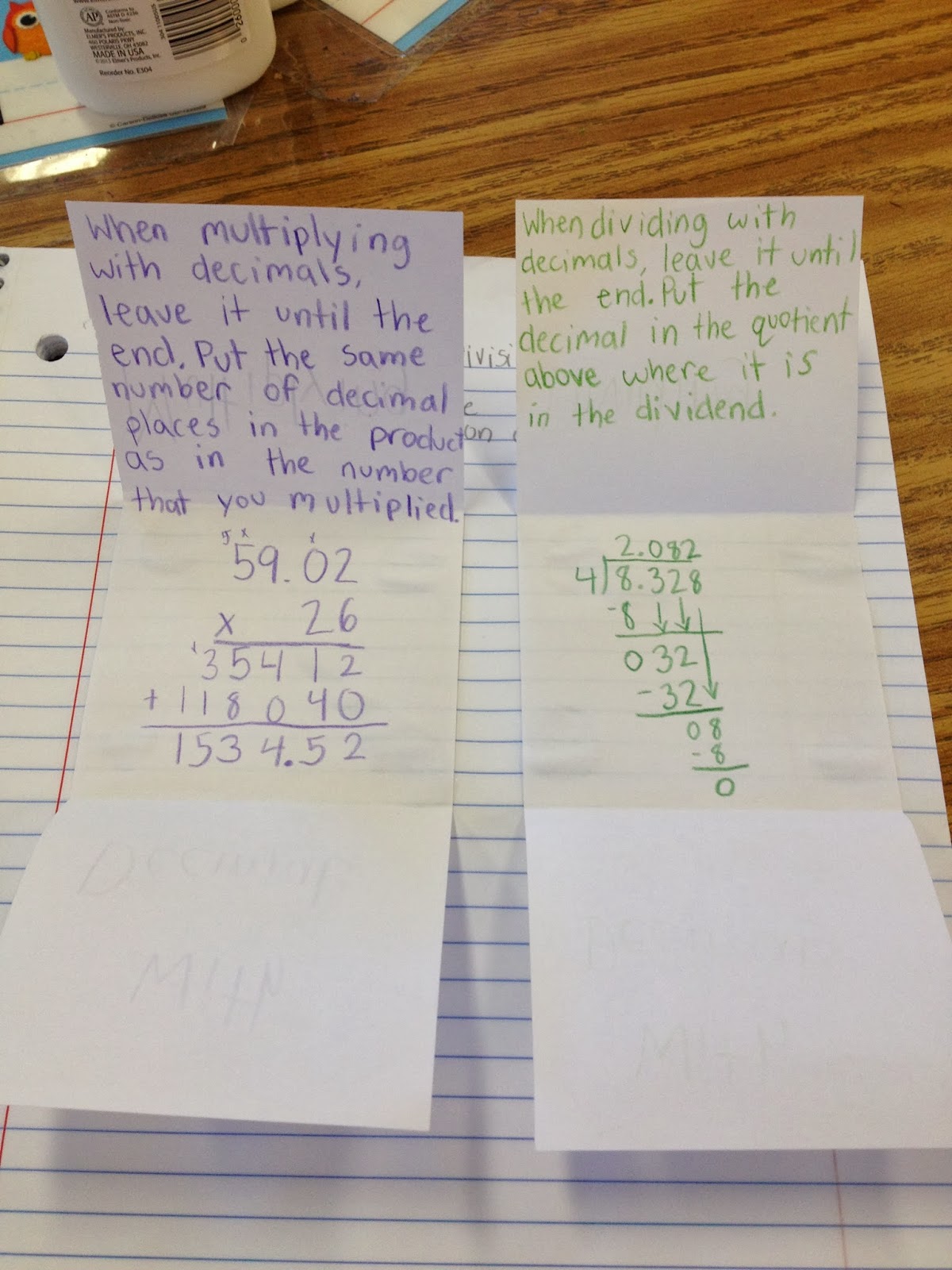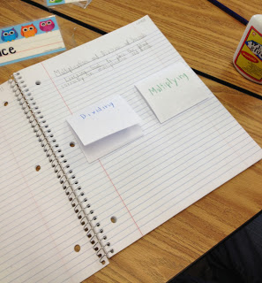 I attempted these again (I am trying them once a week for now so that I can get my time management down), and this time it went better! I am trying to make it less "pieces" as far as what the students are putting together AND what they have to write. I did this with just 2 pieces of paper to fold, write on, and glue (at the end!!). Then, for the writing part, I had the students do practice problems to show their understanding. Afterwards, students shared with partners or helped each other find the answers while I helped a small group.