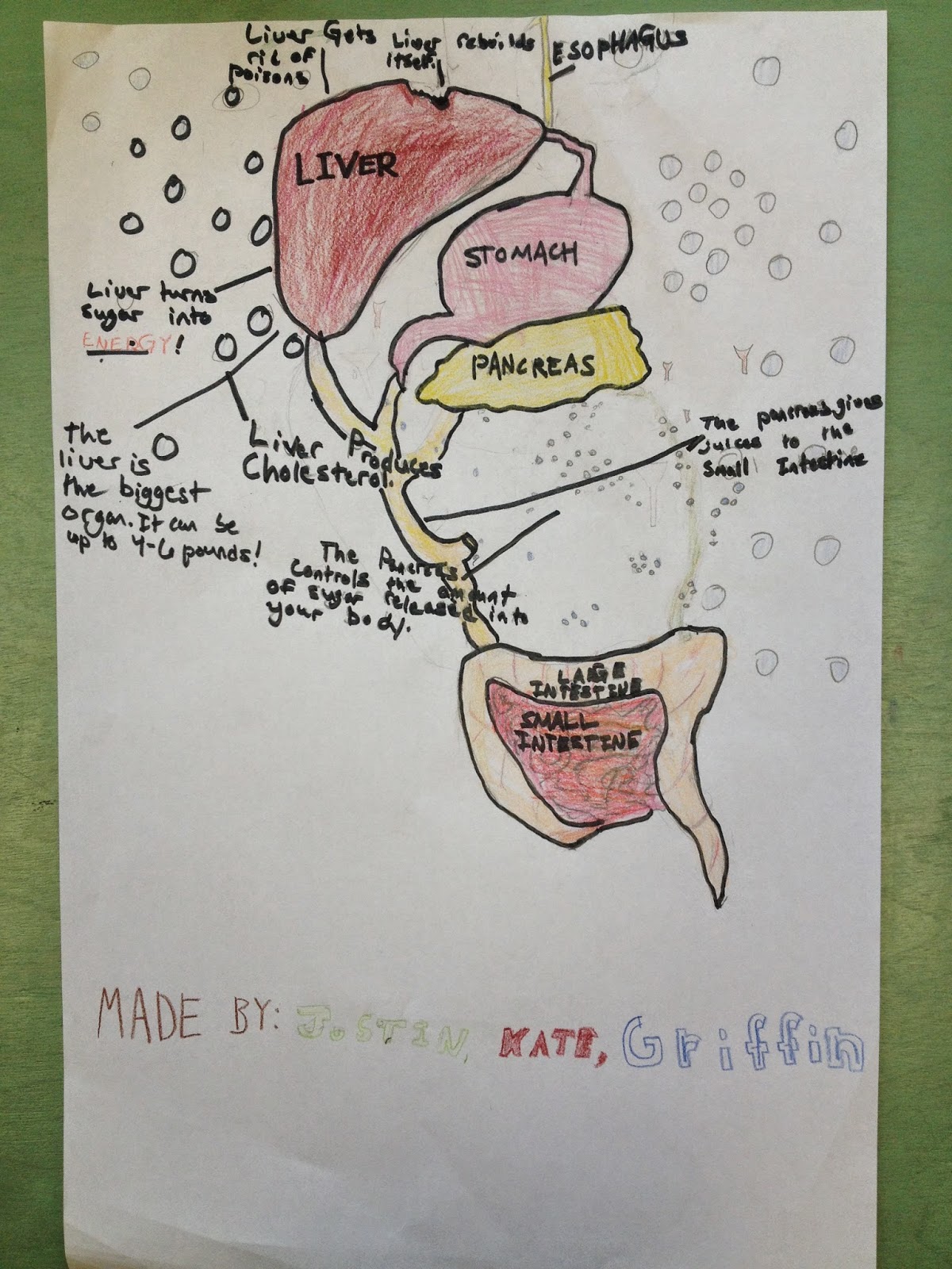 Each group was assigned a different book by Seymour Simon (Bones, Brain, Heart, or Muscles). One at a time, they read a page from the book. After each student had read once, they looked back and decided which ideas were MAIN ideas and how to support the main idea with details.