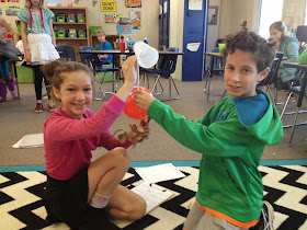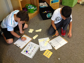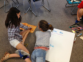 When everyone was finished, we came back to the carpet and discussed the wonderful moments I saw during their work time. I think it is extremely important to compliment, so when I need to focus on a growing edge, students are open to listening and will see that it is important. I also make sure to ask them to reflect and share what they noticed while working - what was successful, what wasn't.