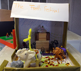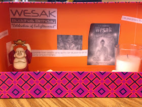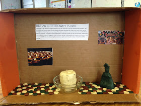 Their assignment was to make a diorama that depicts a Buddhist holiday or festival. They had to also include an essay telling about the festival, which country celebrated it and how. I was fascinated by what they came up with! Pictures below :)