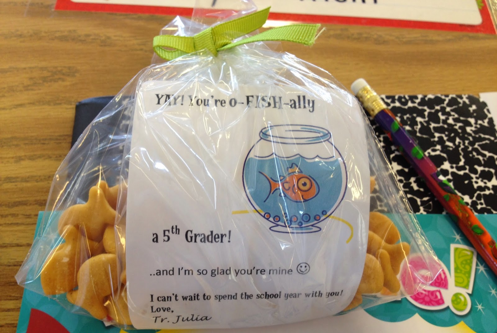 After school, I laminated the name tags and hung them from each student's locker.