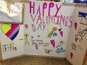 I remember Valentine's Day being one of my favorite holidays as a kid! Switching cards in class and feeling the love all around was just awesome! So last year, I came up with a great way to celebrate Valentine's Day in a way that didn't take up too much class time and allowed students to still have some fun with it. What I did was assign each student with the task of creating ONE totally awesome Valentine's Day card for an unknown recipient. The way it goes is, each student brings in a card that they created which could be given to anyone in the classroom. Then, on Valentine's Day or today (Friday the 13th!) they draw a name from the box and present their card to that person. I absolutely love this because the kids have sooo much fun creating these cards. You can tell from the pictures below that they REALLY got into it! Maybe it is all the bright and fun colors, but just looking at these cards makes me feel happy!