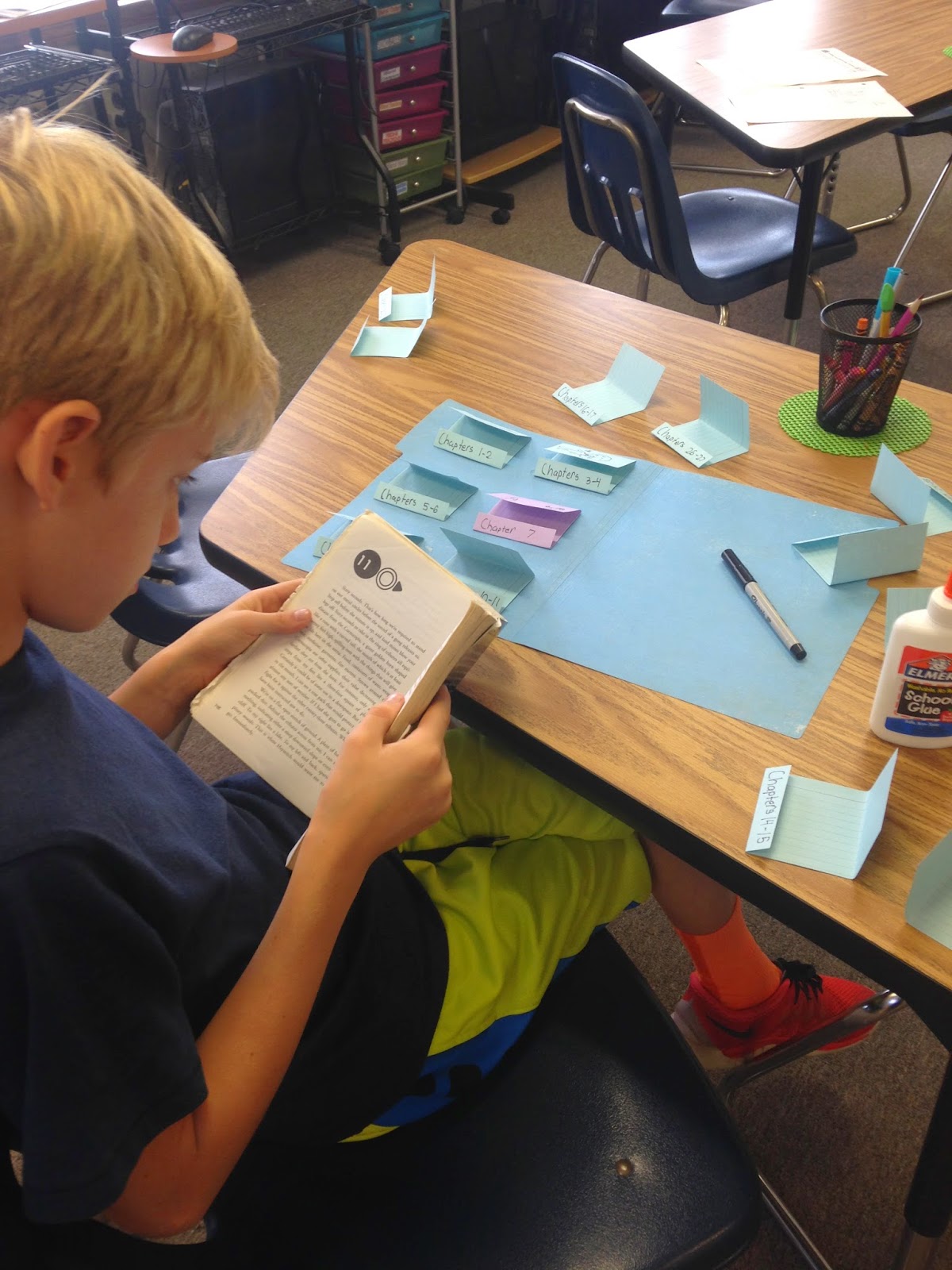 The objective is to summarize each chapter on an index card which is folded to depict a matchbook. Students label the bottom of the matchbook with the chapter number and draw the main scene from the chapter on the front. Inside, students summarize the chapter. For longer books, such as The Hunger Games, I told my kids that they could do 2-3 chapters at a time.